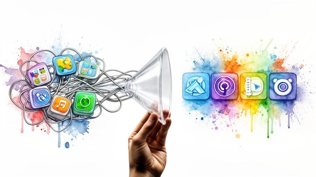 This is the costly mess of an unmanaged application portfolio. The goal of application portfolio rationalization is simple: restore control over tech sprawl, stop the financial leaks, and free up resources to ship what matters. It's how leaders regain control.